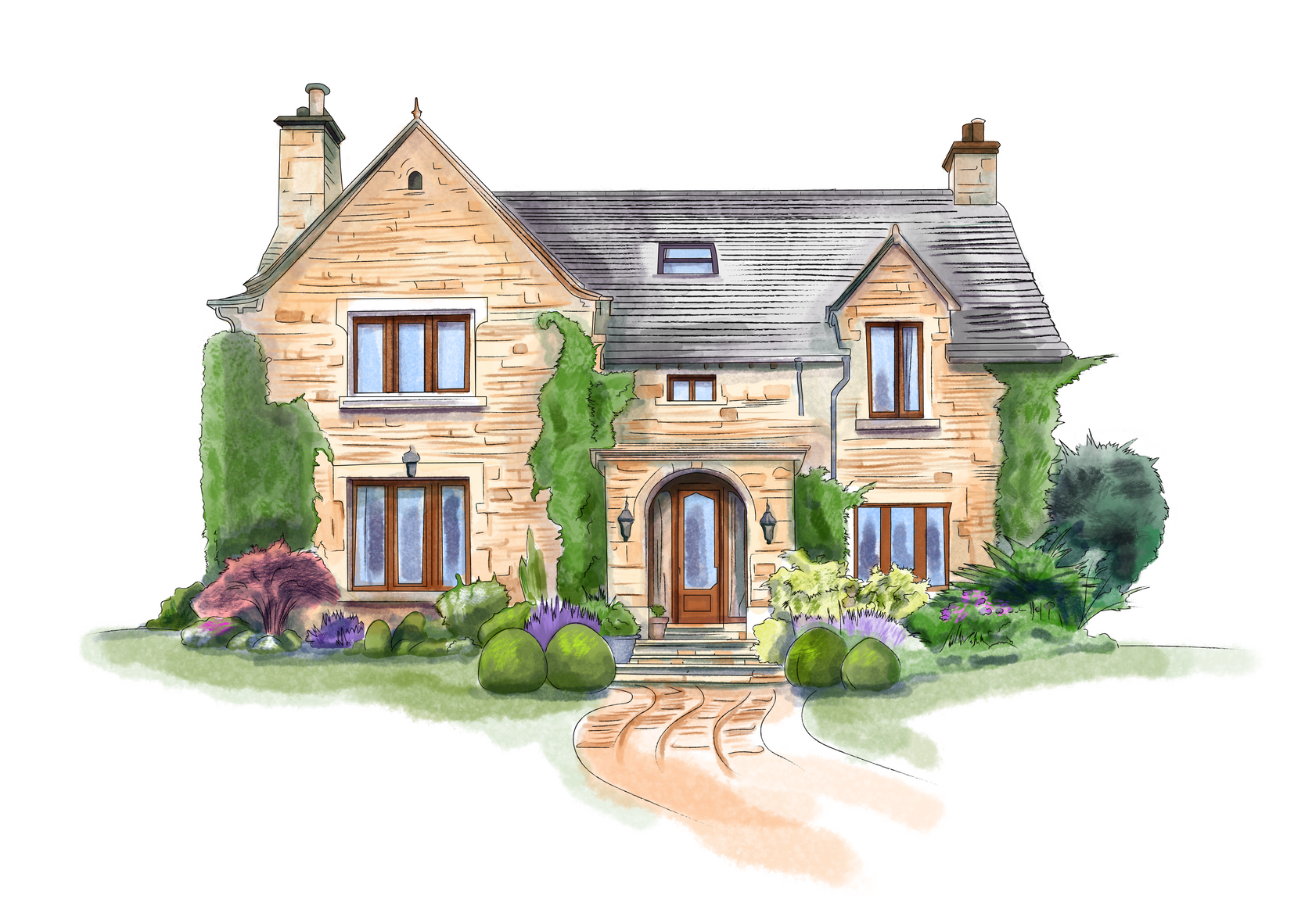 High quality illustrations for architectural buildings and shop designs.